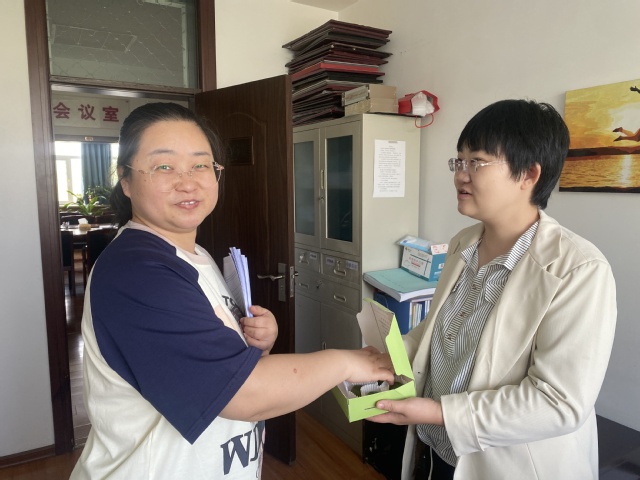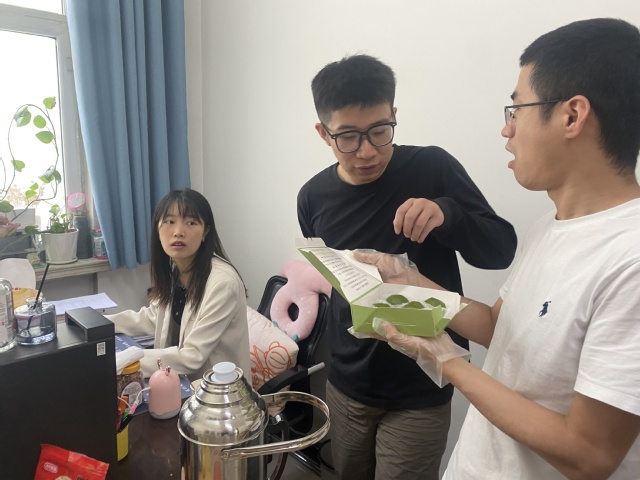 一个小时后各小组制作出了100余枚不同口味的青团,看起来油绿如玉,闻起来清香扑鼻,吃起来糯韧绵软、甜而不腻。为了将美味和快乐分享,护理系李萍书记号召各组青年教师进行“做青团、品春天、送祝福”活动,四位青年教师分别前往党政办公室、教学办公室、研究生办公室、学生办公室赠送刚刚出炉的美味青团,也将春天的祝福送给老师们。