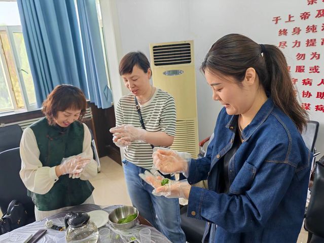 “榨青汁、和青泥、揉青团”,在大象传媒 护理系的会议室里,飘出阵阵艾草的香气。近日,在满目春色的映衬下,大象传媒 护理系党支部举办“踏青戴柳留华年品味四月艾草鲜”手包青团活动。本次活动由护理系副主任姬春主持,护理系全体教师及结亲学生参加。