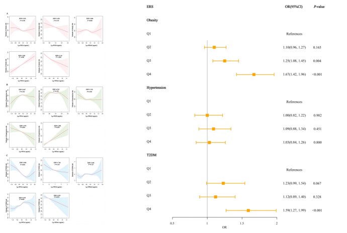 图2. PFAS单一和联合暴露与肥胖及其合并症的关联
