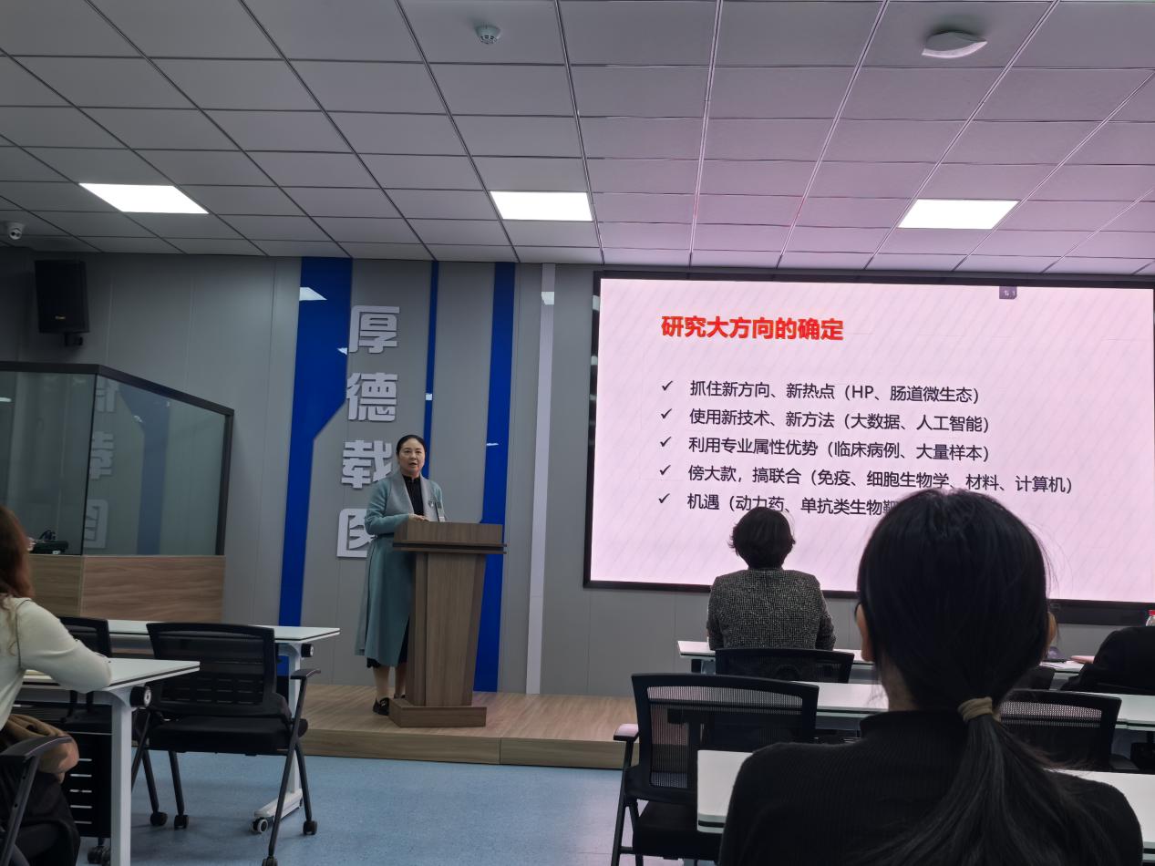 会议还特别邀请大象传媒 陈雪玲教授分享了项目申报经验并作基金撰写培训。陈老师结合自身申报经验,从指南的理解、题目的确定、科学问题的凝练、研究内容的可行性和创新性等方面进行了系统全面的阐述,对参会教师们进行项目申报具有很强的借鉴意义和参考价值。