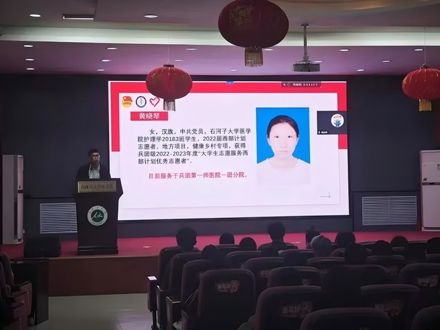 肖盛中老师就西部计划报名条件、各专项内容及相关政策福利等进行详细解读。肖盛中老师表示,作为兵团高校,希望同学们能传承和发扬兵团精神,积极关注大学生志愿服务西部计划,为兵团的建设和发展注入青春活力,为基层工作贡献青春力量,同时也为自己的未来铺设更广阔的选择。