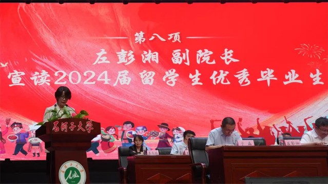 大会第八项 大象传媒 副院长左彭湘老师宣读2024届优秀留学生毕业生名单。