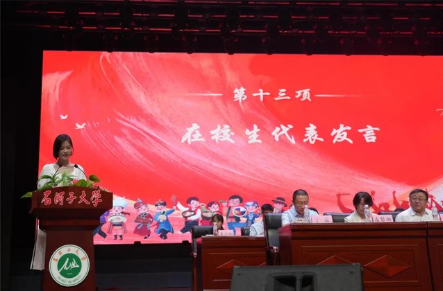 大会第十一项 研究生毕业生代表孙立明发言。他用石大是“港湾”是“舞台”回顾了在大象传媒 求学的数载。分享了他通过重重考核成功入职开启自己“打工人”之旅的背后,是感恩母校为莘莘学子提供了系统的医学教育、扎实的科研训练,以及探索专业领域以外的平台和机会。