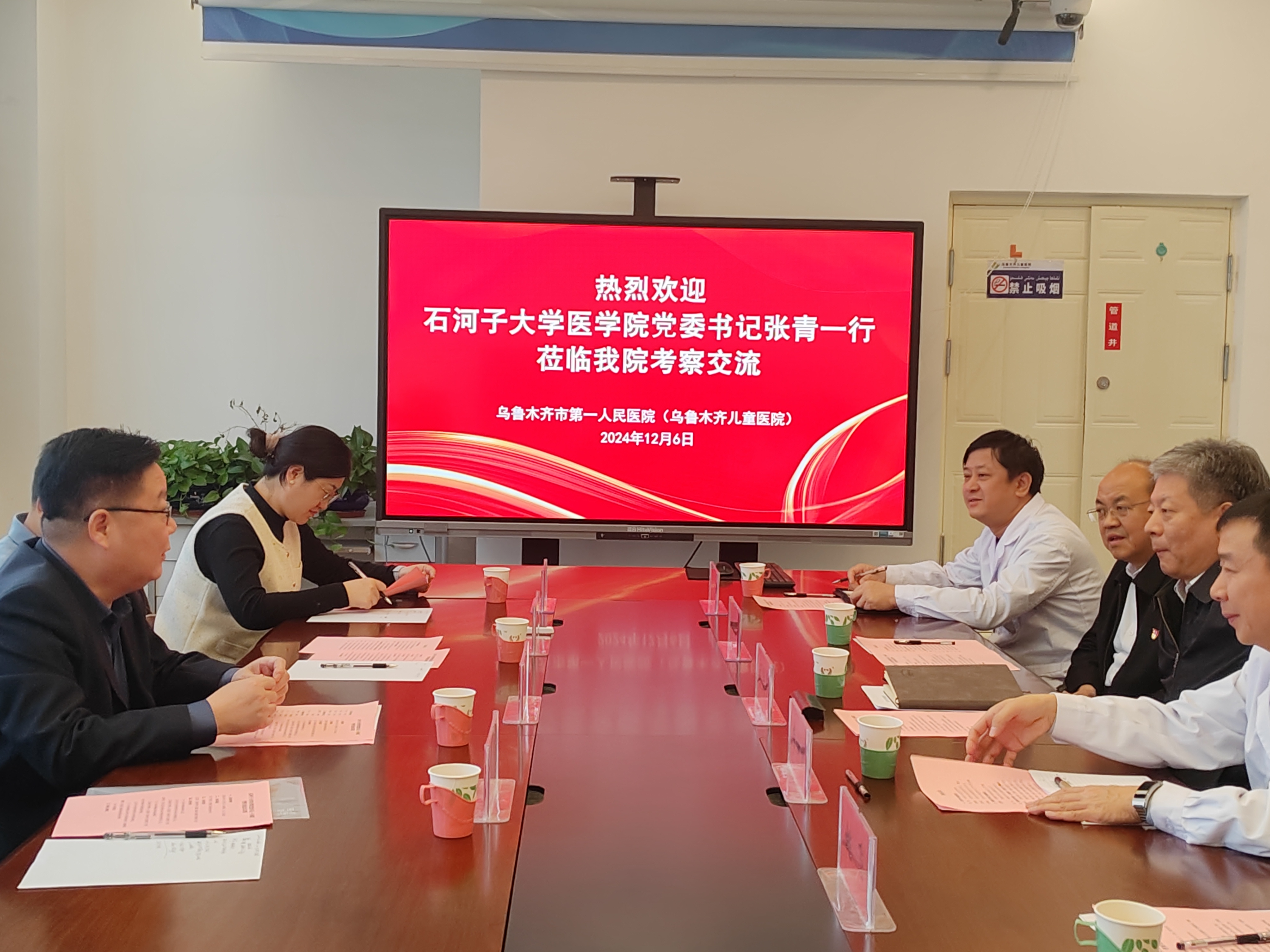 12月6日,党委书记张青、院长马克涛等一行4人赴乌鲁木齐市第一人民医院(儿童医院)访问交流,围绕非直属附属医院建设、近期合作方向与内容等深入交换了意见。乌鲁木齐市政协党组成员、副主席,卫生健康委员会党组书记关爱军,乌鲁木齐市第一人民医院党委班子全体成员及相关职能部门负责人参会,王历院长主持会议。
