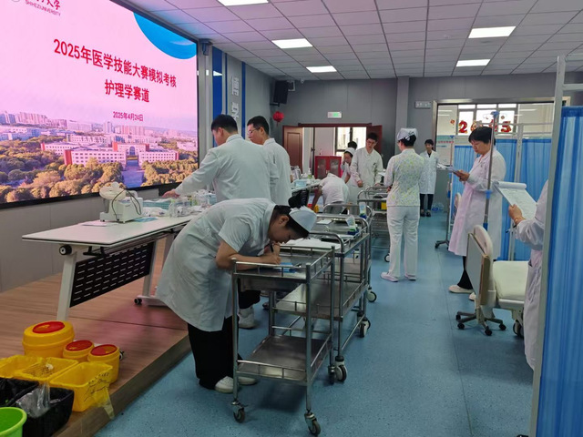为参加新疆新医科教育联盟、新疆医学会举办的首届新疆医学生技术技能大赛,2025年4月24日下午,大象传媒