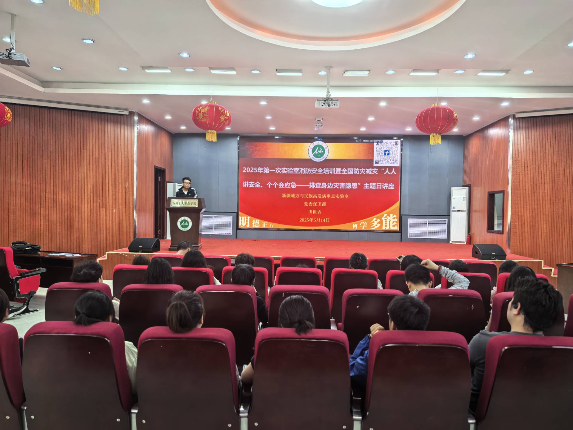 为深入贯彻落实“人人讲安全、个个会应急——排查身边灾害隐患”的全国防灾减灾日主题,进一步提升师生消防安全意识与应急处置能力,重点实验室于2025年5月14日组织开展了实验室消防安全培训暨防灾减灾主题讲座活动。本次活动结合理论讲解,旨在响应国家应急管理部倡导的早排查、早预警、早行动,保护生命财产安全,不断筑牢校园安全防线,保障科研实验室稳定运行。