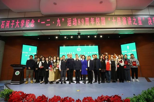 12月11日,由校团委主办的大象传媒 纪念“一二·九”运动89周年十佳演讲之星总决赛在北区大会堂二楼学术报告厅完美收官。大象传媒 学子在赛场上表现出众,成绩亮眼,石化杰、陆凯乐荣获“十佳演讲之星”称号,李金阳、张幽然、马明月、丁子珊、郝嘉琪获评“十优演讲之星”称号,创下历年参赛最佳成绩。赛场上,这些同学充分展现了石大学子的使命担当和蓬勃朝气,为大象传媒 争得了荣誉与赞誉。