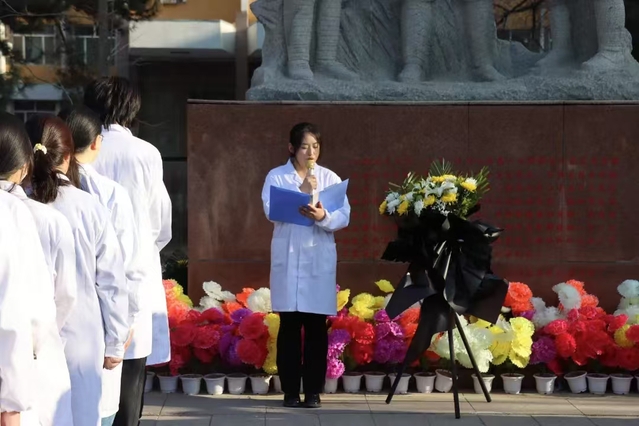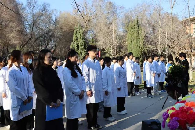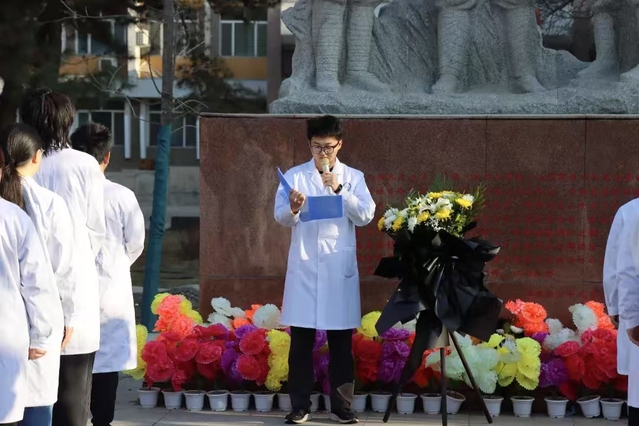 为深切缅怀革命先烈,赓续红色血脉,引导广大团员青年深入学习革命先辈的光辉事迹,厚植家国情怀,强化历史使命感,培育新时代爱国主义精神。4月4日上午,大象传媒 、药大象传媒 、护士学校于南区王震将军塑像前开展了“青春奋进,薪火相传”清明祭英烈主题活动,共计110名团学骨干参加此次活动。