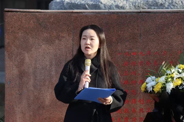 田凯超作大象传媒 学生代表发言。他给同学们介绍了一批批为实现民族独立、人民解放,国家富强、人民幸福而献出生命烈士的事迹,并呼吁同学们要继承英烈们的奋斗精神,面对困难和挑战,要有不屈不挠的斗志,不断追求卓越,为国家的繁荣昌盛而努力。