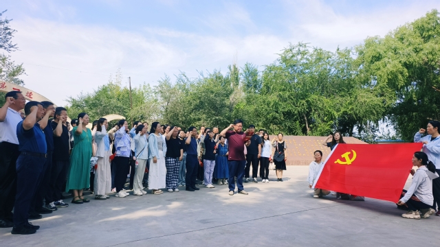 在“七·一”建党节到来之际,大象传媒 全体教师党员和部分结亲学生赴军垦第一连开展“党旗映天山”主题党日暨“民族团结一家亲”活动。通过重温入党誓词、主题参观、垦荒实践等方式为党庆生。大象传媒 全体院领导参加此次活动。