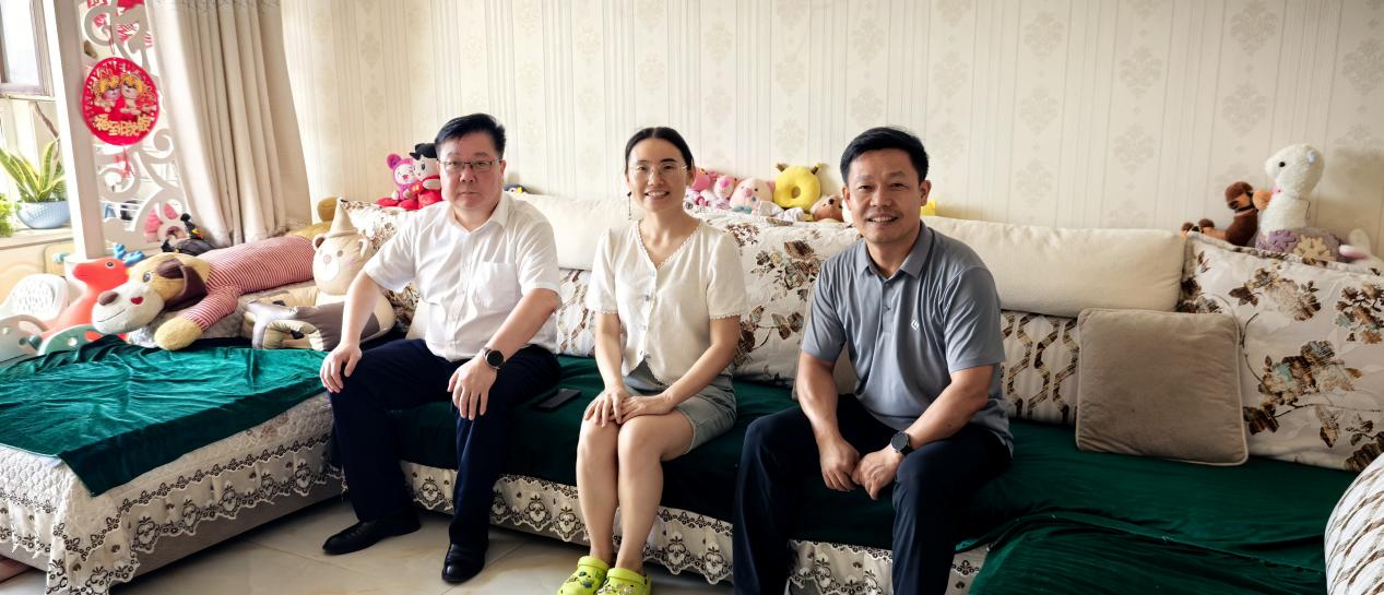 2025年7月30日上午,慰问组先后到教职工唐娜、罗华英、董丹家中,关切询问老师们的工作、生活、孩子教育等近况,感谢他们为国防事业的付出,并送去慰问品与大象传媒 的祝福。得知王官利老师正忙碌于2025年教育部基础医学“101计划”教师发展研讨会的会场筹备时,张青书记一行立刻决定前往工作现场慰问。