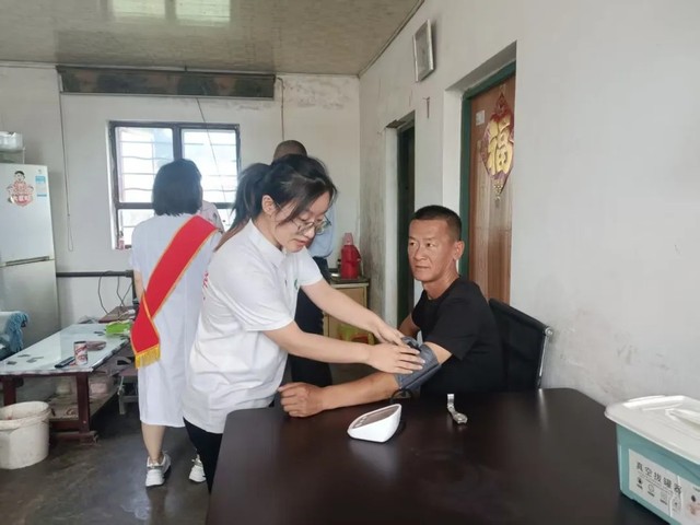 走进张金生老人家中,实践团成员刚坐下就关切地问:“张大爷,最近身体怎么样?有没有哪里不舒服?”老人笑着摆摆手:“别的毛病没有,就是这高血压得天天盯着。”团队成员立刻拿出血压仪为他复测,167团医院中医科冀梅医生紧跟着问道:“上次给您做的肩膀理疗,现在恢复得咋样了?”“好多啦!”老人边说边抬臂示范,“之前抬胳膊都费劲,现在干活利索多了,多亏了你们!”