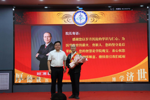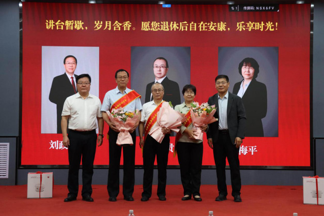 第二环节“岁月如歌,荣光绽放”由大象传媒 工会副主席郅洁老师主持。生理教研室刘政江教授作为退休教师代表,深情回顾了自己数十载的执教生涯,言语中充满了对大象传媒 的深厚情感与对后辈的殷切嘱托。学生代表随后上台,用真挚的语言表达了对恩师们无私奉献的感激与不舍,并送上全体学子最美好的祝福。新进教师们手捧鲜花,向为大象传媒 发展倾注毕生心血的前辈们致以最崇高的敬意。李浩老师一曲深情动人的《老师,我总是想起你》,更是将现场的感恩与惜别之情推向高潮。随后马克涛院长代表大象传媒 向所有荣休教师致感谢辞,高度赞扬了他们立德树人、潜心治学的卓越贡献,并祝愿他们退休生活幸福安康。