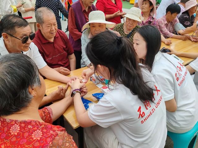 1.拓展服务场景,让健康服务触手可及。在社区开展慢病科普宣讲,在社区广场设“移动义诊”点,在列车上进行“快闪”科普,为行动不便者提供床旁服务,实现健康服务无死角。实践团共开展7次宣讲科普,7次义诊,7次社会调研,入户1800余户,累计惠及4000余人。