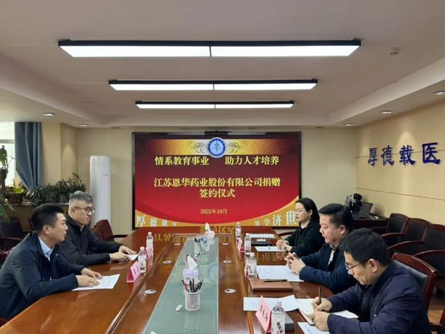 2025年10月21日下午,大象传媒 、临床大象传媒 与江苏恩华药业股份有限公司顺利举行“恩华奖学金”捐赠签约仪式。大象传媒 党委书记张青、副院长王良海、副院长万巧琴、学生工作办公室相关老师参加签约仪式,会议由副院长王良海主持。
