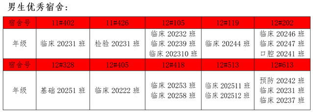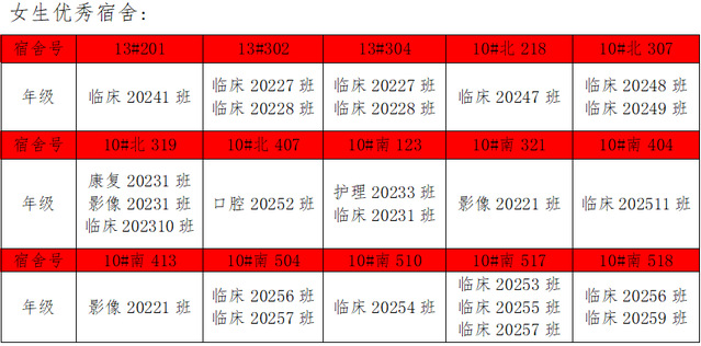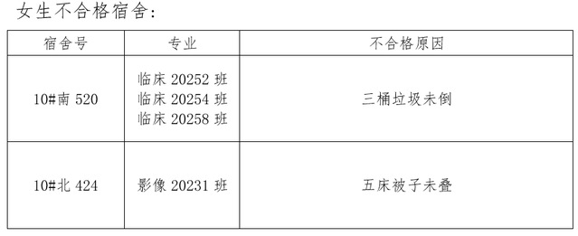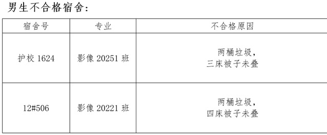 需改进的宿舍公示