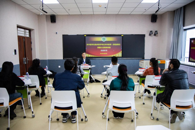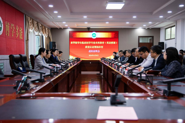徐善东书记代表学校对认证专家组一行到校指导和考察表示热烈欢迎。他表示,对来华留学生高等教育开展质量认证工作是国家来华留学质量保障体系的重要组成部分,也是对大象传媒来华留学临床医学专业本科教育(英语授课)质量水平的全面体检,是对学校国际化办学能力的系统把脉。学校将以此次现场考察为契机,做好顶层设计,切实推进学校各项事业特别是医学事业的高质量发展,进一步提升国际化办学能力及影响力。