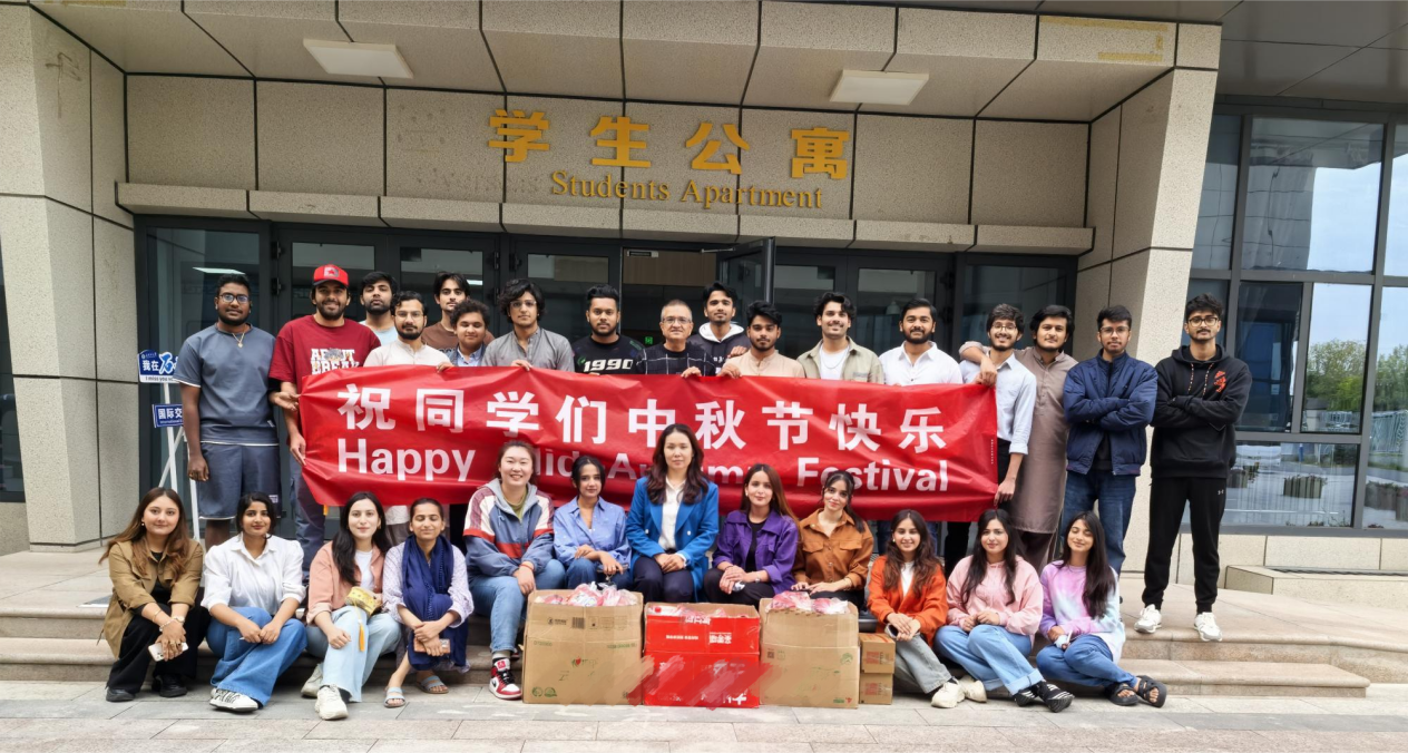 留学生办公室的老师们还向全体在校留学生们发放中秋月饼,祝愿留学生及其远方的家人身体健康、快乐平安。