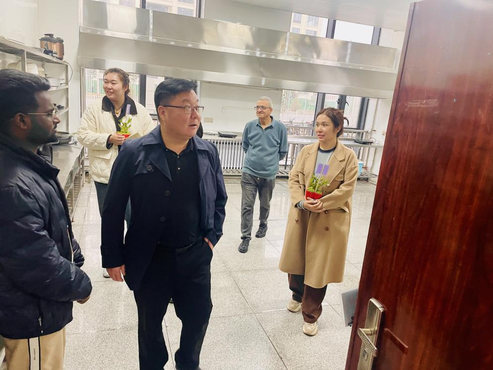 在与留学生们的亲切交谈中,张书记详细了解了同学们的生活学习情况、实际困难及需求。他特别关注了留学生们在学习上的挑战和语言学习上的进步。张书记勉励同学们要志存高远,脚踏实地,刻苦学习,合理规划,努力提高自身的学习能力和专业素质。张书记强调,留学生们应充分利用在华留学的机会,加强对汉语和中国文化的学习。他鼓励留学生们努力做中外文化交流的使者,通过自身的努力和学习,促进中外文化的交流与理解。