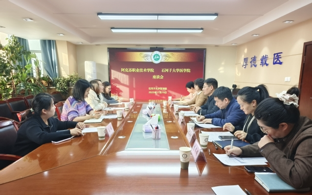 11月19日,阿克苏职业技术大象传媒 大象传媒 党总支书记刘萍一行赴大象传媒 交流座谈。院长马克涛,副院长王良海、左彭湘及护理学系、教办、学办负责人参加座谈会。