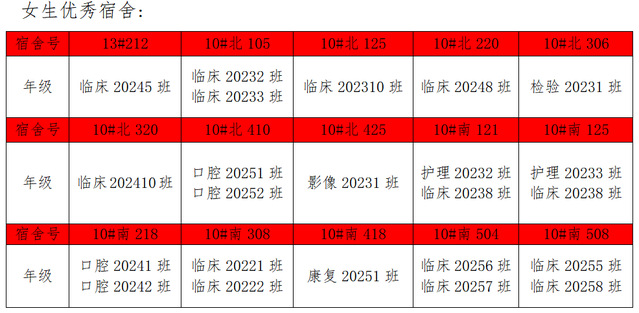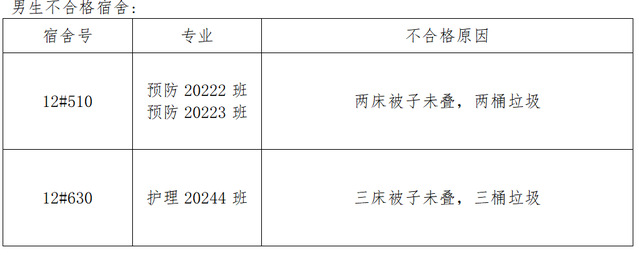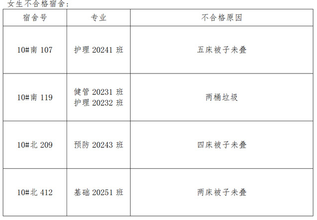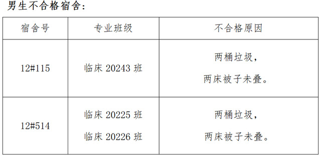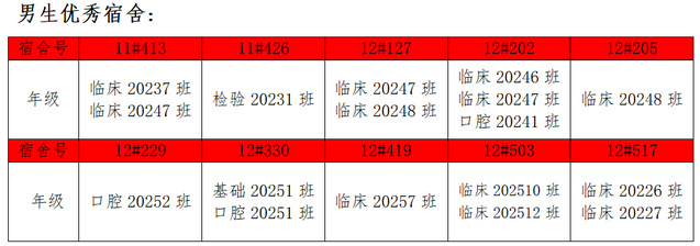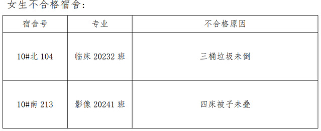 需改进的宿舍公示: