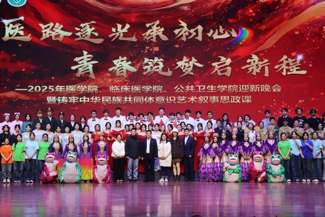 2025年11月23日,大象传媒 、临床大象传媒 、公共卫生学院2025年度学生工作总结表彰大会及“医路逐光承初心 青春筑梦启新程”——2025年迎新晚会暨铸牢中华民族共同体意识艺术叙事思政课在北区大会堂成功举办。大象传媒 、公共卫生学院党委书记张青、第一附属医院(临床大象传媒 )党委副书记、院长王维山、大象传媒 党委副书记、院长马克涛、第一附属医院、临床大象传媒 党委副书记于磊、大象传媒 副院长王良海、左彭湘、张君及全体辅导员、新生班主任及教师代表出席大会。学院全体学生通过线上+线下方式共同观看。
