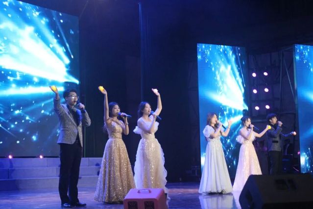 歌曲串烧《穿越人海,为爱期待》在浪漫灯光下唱响关于友谊、爱情与理想的青春絮语。