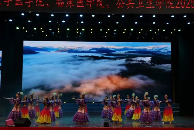 迎新晚会由王海楠、刘蒙恩、郝嘉琪、丁郅航、赵亚萱、杜匡生共同主持,以“医路逐光承初心 青春筑梦启新程”为主题,通过序章“初遇・天山为证”及三大篇章“初心・医路启航”“芳华・筑梦时光”“逐梦・未来可期”,为全场师生呈现了一场兼具艺术性、思想性与时代性的视听盛宴。