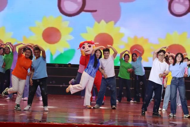 师生同台舞蹈的《蛙鸣律动,以爱迎新》形式新颖,辅导员和同学们以活泼律动展现师生同心的温暖氛围。
