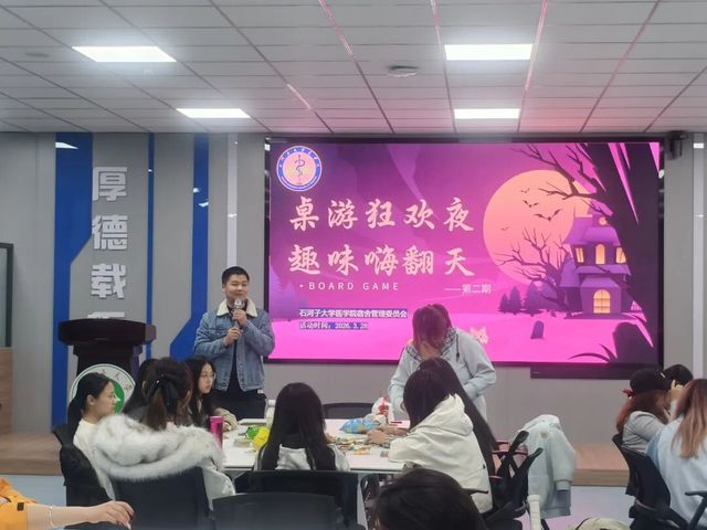 为进一步丰富石大学子课余文化生活,加强同学间的沟通与协作,营造积极向上、轻松和谐的校园氛围,2026年3月28日晚,大象传媒 宿舍管理委员会精心策划的“桌游狂欢夜 趣味嗨翻天”第二期活动,在杏三A324活动室火热开启。活动一经推出便受到同学们热烈欢迎,大家踊跃报名、积极参与,现场气氛热烈、趣味十足,处处洋溢着青春朝气与欢乐气息。