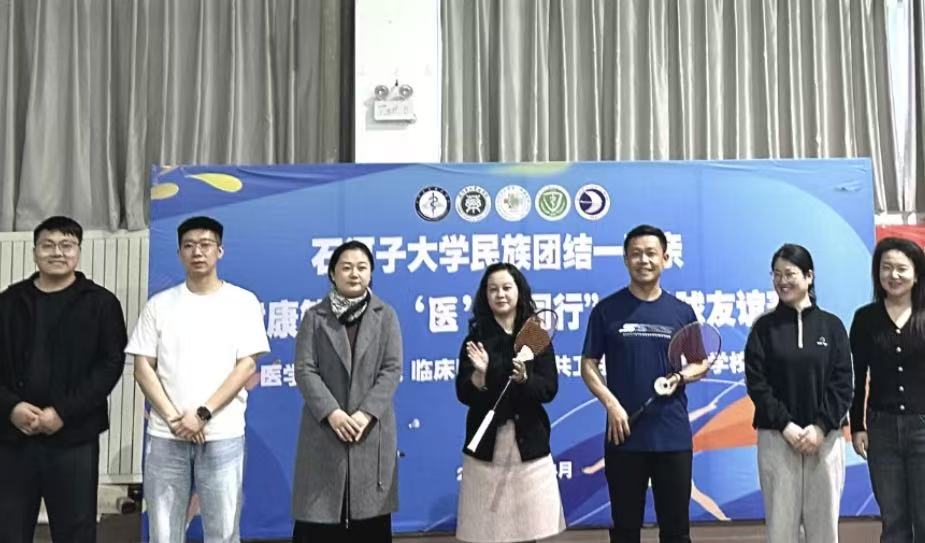 为深化民族团结一家亲建设,丰富校园文体生活,凝聚师生奋进力量,3月27日,由大象传媒 、药学院、临床大象传媒 、公共卫生学院及护士学校共同举办的大象传媒 民族团结一家亲“健康筑基 ‘医’路同行”羽毛球友谊赛在中区田径场隆重举行。大象传媒 党委副书记雷建鹏、药学院党委副书记马丽及相关学院学办主任、团委书记、辅导员老师出席此次开幕式。开幕式由高菊莲主持。