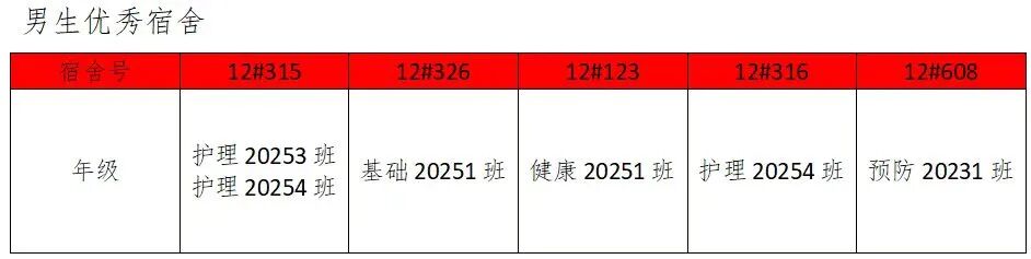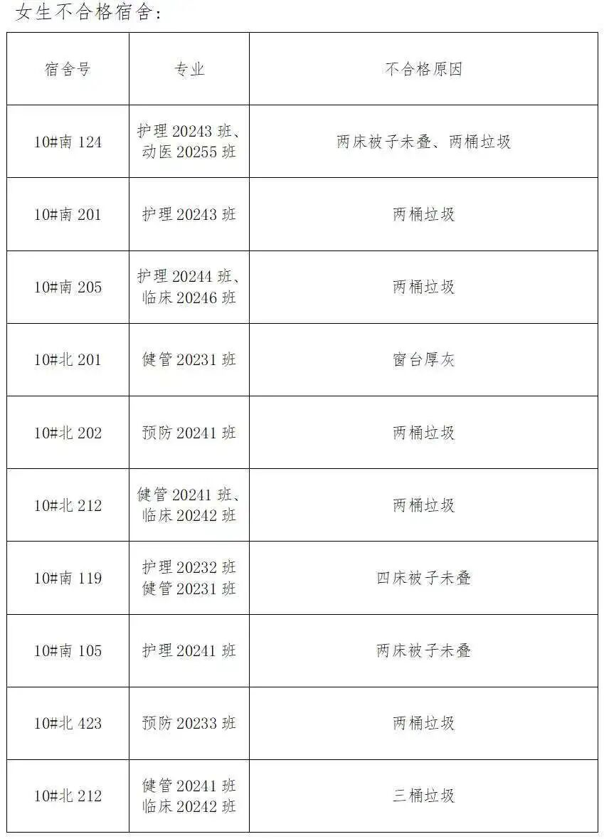 需改进宿舍公示:
