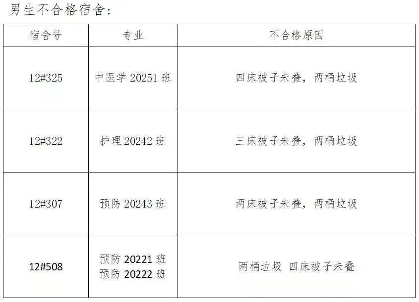 宿舍环境质量直接影响同学们的日常居住感受与校园生活品质。在此,希望优秀宿舍珍惜荣誉、再接再厉,持续发挥示范引领作用;需改进宿舍正视问题、及时整改,切实提升宿舍卫生水平。学院宿管会欢迎广大同学对宿舍管理工作提出意见建议,共同营造安全、整洁、温馨、和谐的住宿环境。