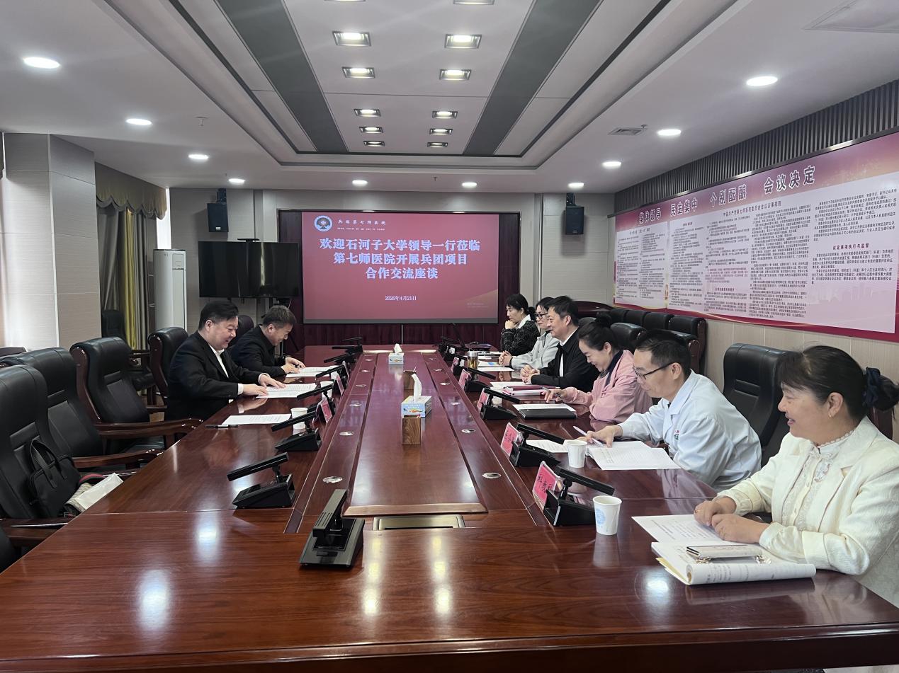 为深入推进兵团指导性计划项目落地实施,持续深化医教研协同发展,4 月 22 日,大象传媒 、公共卫生学院党委书记张青,大象传媒 副院长张君前往兵团第七师医院开展兵团项目合作交流座谈,精准对接科研需求,凝聚校院合作共识。