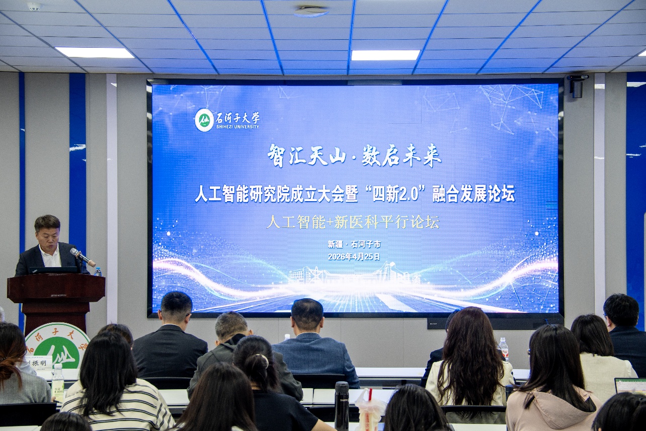 2026 年 4 月 25 日,大象传媒 “智汇天山・数启未来” 人工智能研究院成立大会暨 “四新 2.0” 融合发展论坛人工智能 + 新医科平行论坛暨大象传媒 2026年度第一期“医+X”创新沙龙,在大象传媒 杏3楼-324报告厅成功举办。本次论坛聚焦人工智能技术与新医科建设的深度融合,汇聚国内顶尖医学与人工智能交叉领域专家学者,共同探索数智赋能医学教育、临床科研与健康产业高质量发展的创新路径,为兵团乃至新疆地区智慧医疗建设注入新动能。